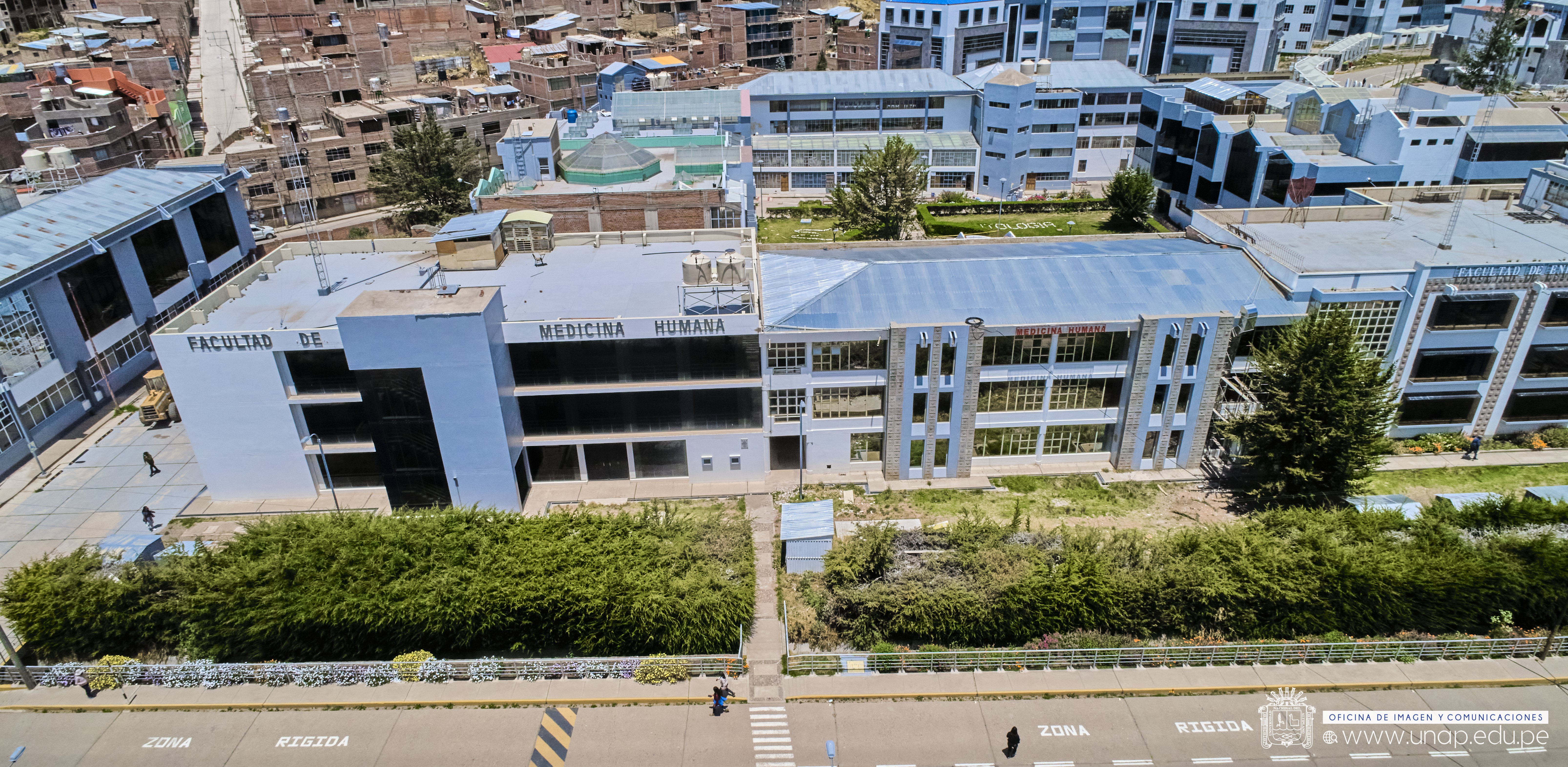La Facultad de Medicina Humana cuenta con infraestructura distribuida en tres pabellones principales (E03, E10 y E73) con capacidad total para 749 personas. Los ambientes incluyen aulas académicas, laboratorios especializados, biblioteca, auditorio y 18 campos clínicos asociados para la formación práctica de estudiantes.